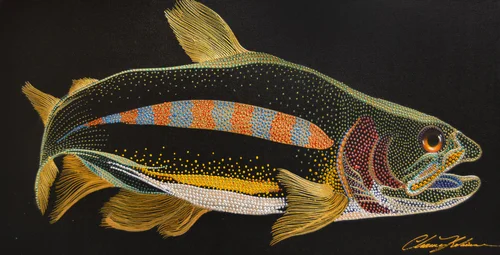 Pieces in this series are divided into two groups. The first group are full color, full vibrance pieces that aim to capture every detail of the subject. The second group of pieces are made transparent to allow the viewer a more gestural approach to the fish as a subject matter.